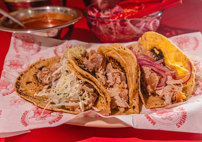 Auténticas carnitas michoacanas con tortillas hechas a mano, tradición en cada bocado.