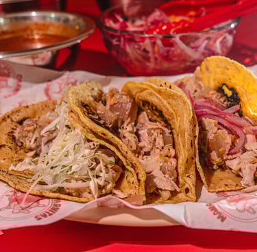 Auténticas carnitas michoacanas con tortillas hechas a mano, tradición en cada bocado.